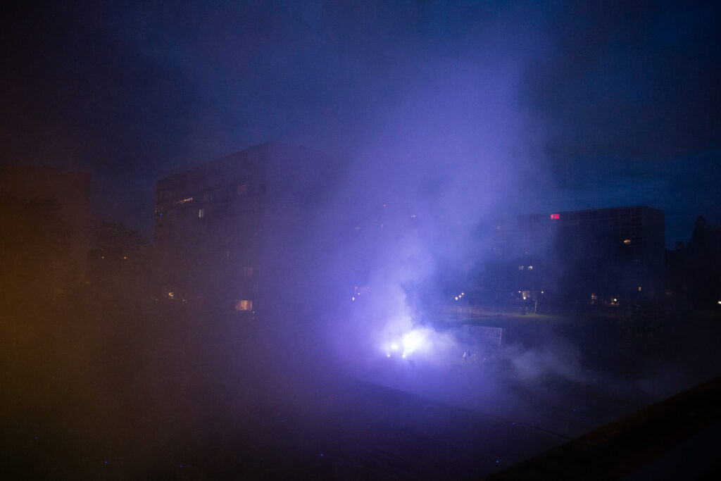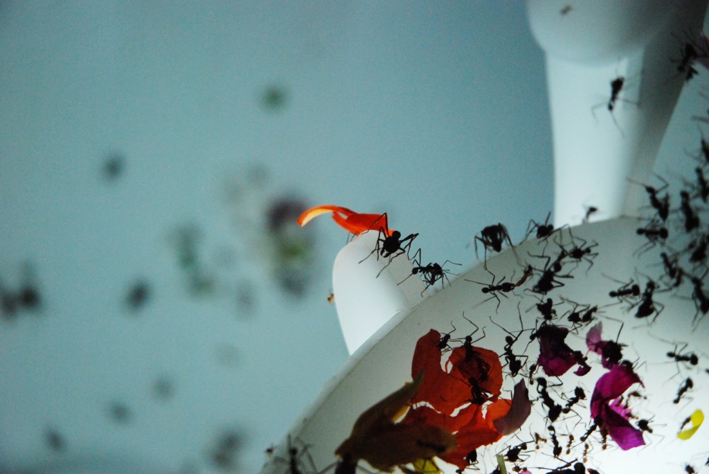 In a mangrove forest in Thailand live fireflies (Pteroptyx malaccae) synchronise their flashes with computer controlled LED’s. By establishing a light-based form of communication with the insects, the artists influence the rhythmic flashing of large colonies of fireflies. A silent orchestra harmonises without the need for a conductor. With no central control, computers and insects interact in this rhythmic composition of light.