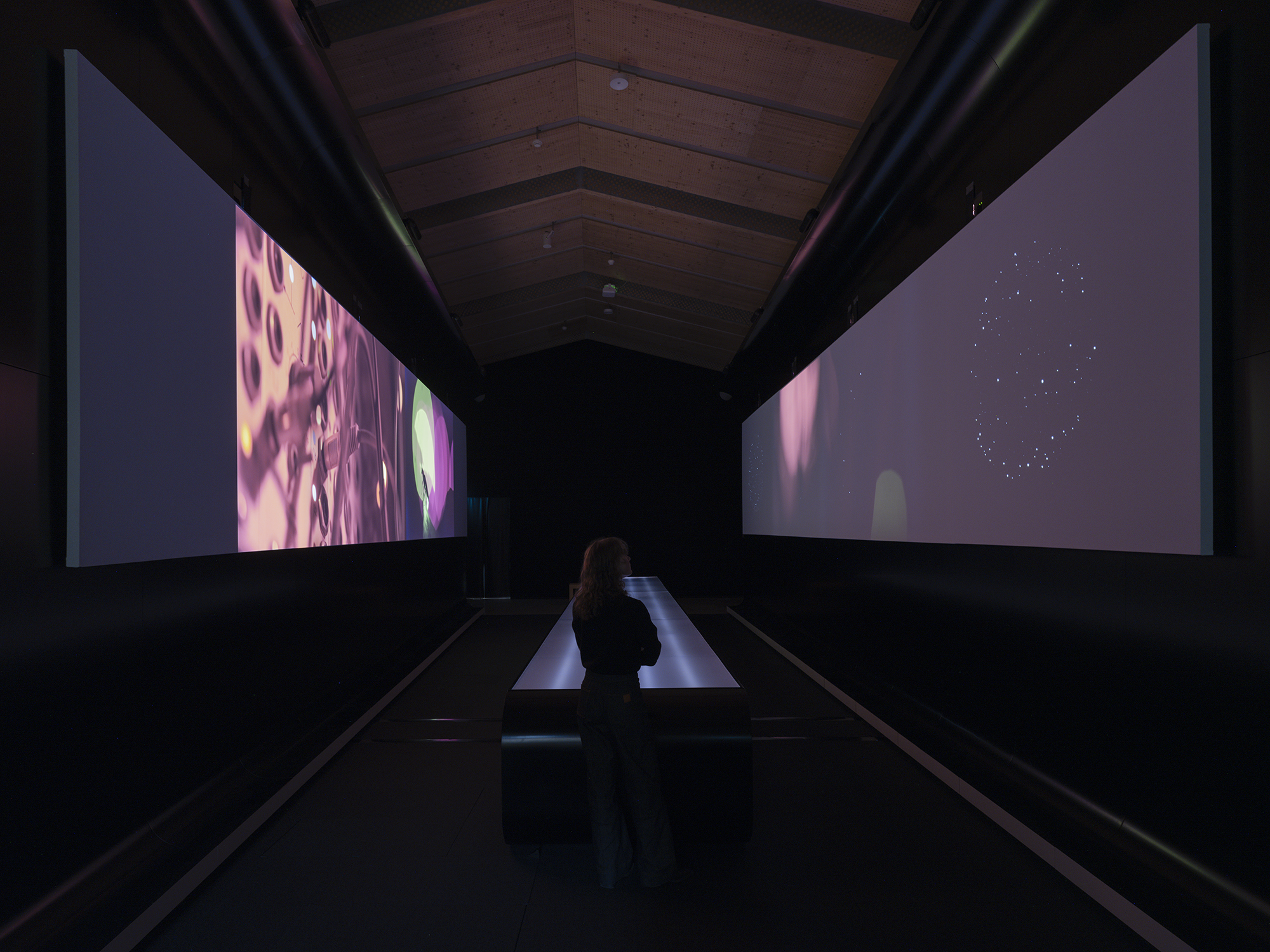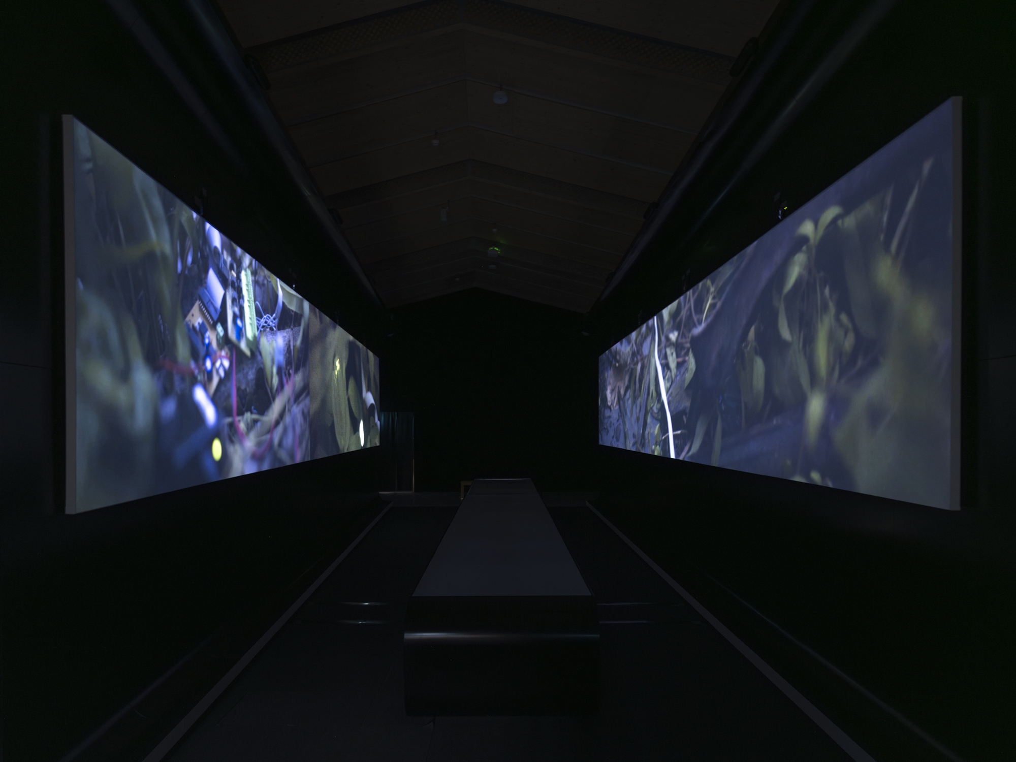 New recordings and many discussions about biology, mathematics, art and aesthetics led to a new series of works: photographic prints, a 16mm film, ultrasound recordings and this new multichannel video: Chimera States, shown at the EPFL Pavilions in Lausanne, Switzerland during the Lighten Up! Exhibition in 2023.