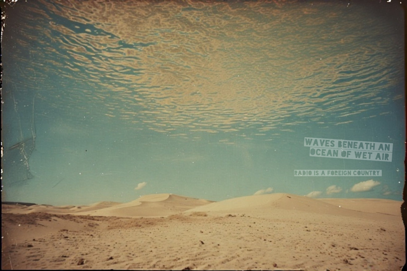 "Waves Beneath an Ocean of Wet Air" is an interactive sound collage that explores the connections between desert and sea. Imagine 7 exotic "radio stations" slowly drifting and crossfading into one another - field recordings from the Empty Quarter in the Arabian Peninsula (e.g., singing sands, dune sediment, foraging ants); submarine recordings from the Indian Ocean; Riyadh web radios, radio sound effects and static; electromagnetic interference and more. It's a bit like turning on a shortwave radio; listeners can remain on a fixed frequency or use the tuner to cycle through the "stations" to produce seemingly endless and shifting layers. Every hour or so, a gong signal reverberates through all the stations simultaneously. The result is a vibrant sonic metaphor capturing the subtle, often unnoticed intimacy between desert and sea, blurring the boundaries that separate them in the human imagination.
