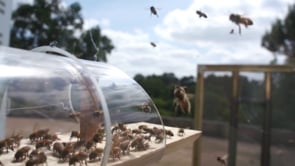 Texte de Virginie Bourget: Les colonies d'abeilles ont été le sujet d'innombrables recherches scientifiques, dont celle de l'étude du langage. En ce sens, lorsque Buffon parlait de mouche, il se référait à l’abeille et aux recherches que ses collègues naturalistes menaient pour mieux comprendre, notamment, la danse de l'abeille. Cet insecte est en effet à même d'indiquer la présence, l'orientation et la distance d'un butin, mais plusieurs éléments de langage s'avèrent encore inconnus des scientifiques. De récents développements en micro-robotique et en acoustique ont permis d'approcher avec un nouvel angle cette problématique.